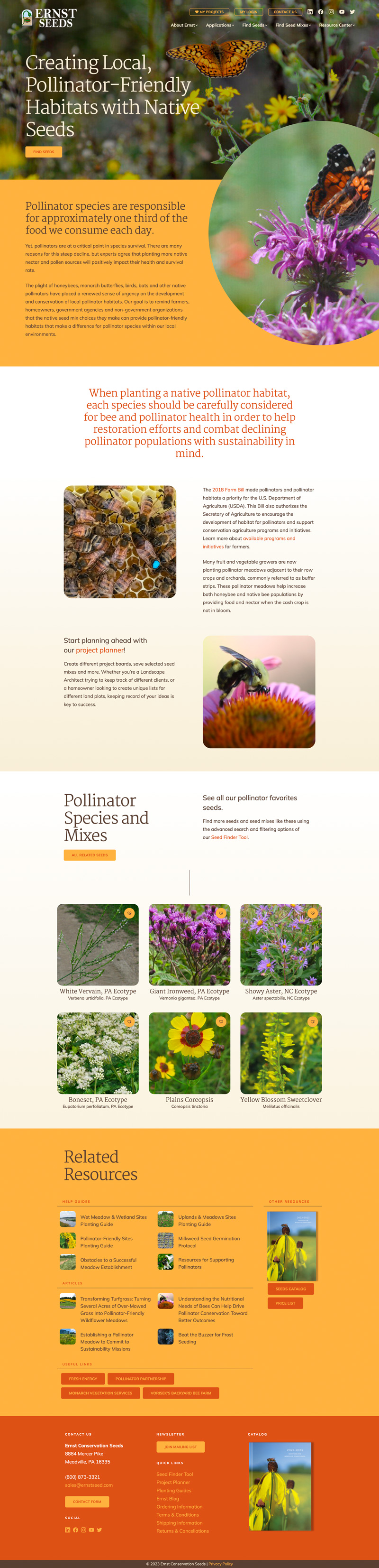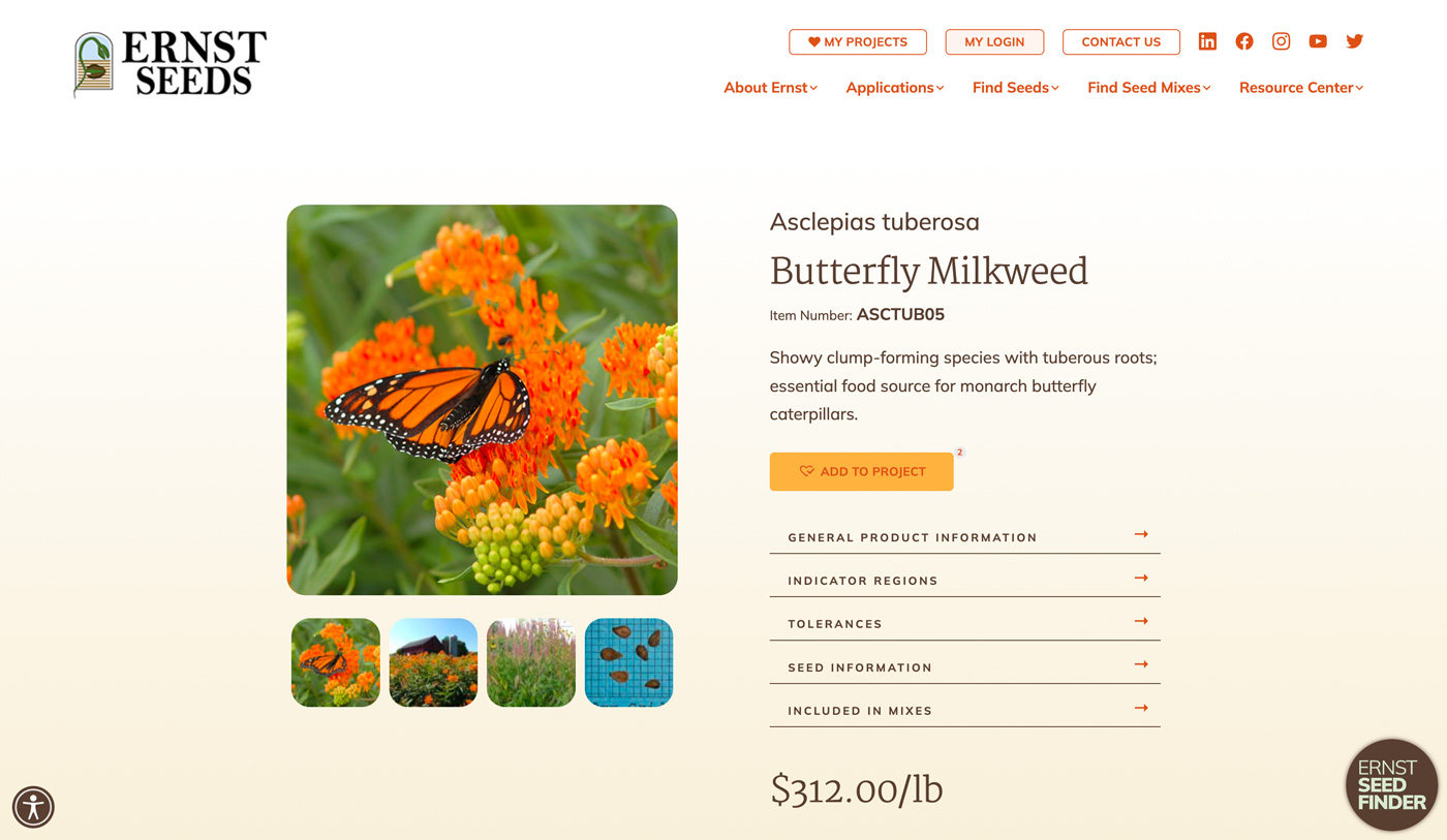 The experience on the site mimics a regular eCommerce site, with single product pages and in-depth faceted filtering and sorting incorporated on a Seed Finder Tool. Instead of adding products to a cart, customers add them to projects they can create and edit. Those projects are then sent to Ernst directly from the site, giving the sales team all the information they need about the customer and their order.
