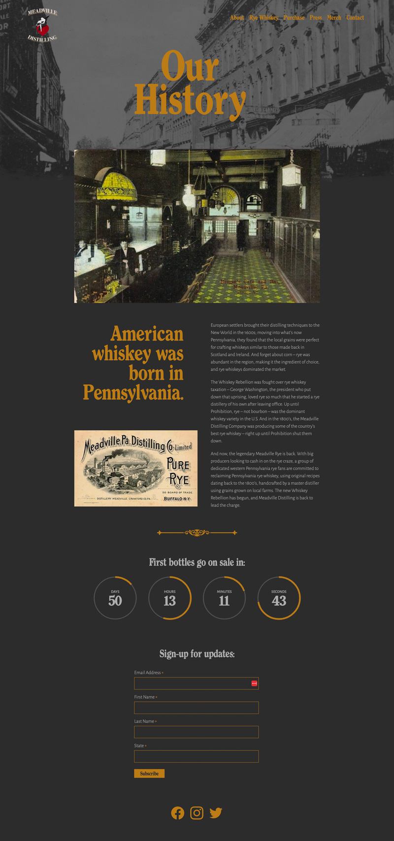 After getting their hands on the original Meadvile Rye Whiskey recipe, Meadville Distilling knew they needed a website to raise awareness and bring the historic brand back.