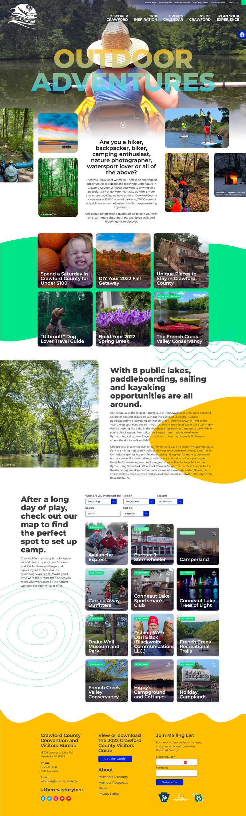 For being a small county in the Northwest corner of Pennsylvania, Crawford County has a lot to offer. The problem was nobody knew about it. Including locals. A website was needed to showcase the county, attract visitors to the area and to get buy-in from the local community and stakeholders.